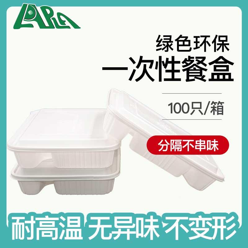 全生物降解环保一次性方形分隔餐盒(3格/4格)无毒无异味学校